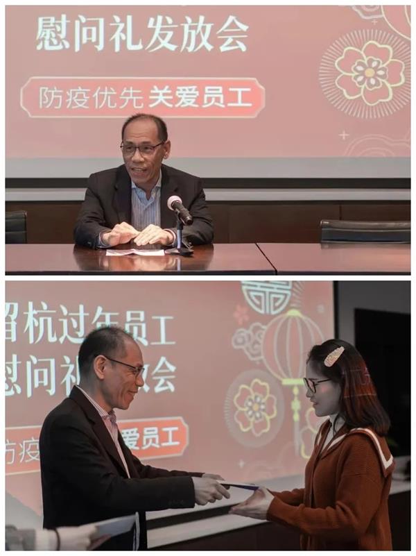 在2月8日下午举办的迎春暖心福利发放会上,首席合伙人余强先生出席并发表讲话。余强先生表示:“中汇历来具有外地员工留下来共同过年的传统,大家在事务所工作、学习,是事务所发展的重要力量。今年虽然因为疫情,大家不能聚在一起吃年夜饭,但事务所一定会竭尽力量做好后勤服务工作,也希望暖心福利能够让留在工作地过年的外地员工体味到一份来自事务所的温暖。”同时余强先生就员工代表对事务所防疫留人稳岗工作的支持表示感谢,并向员工代表们发放了各种礼包。