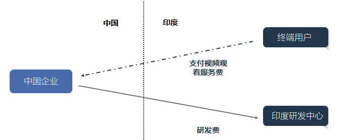 如下案例中,需要关注的是中国企业在印度是否构成数字常设机构。 如构成,将缴纳印度所得税。实践中,对于是否在印度构成数字常设机构,需要根据上一年此类交易产生的付款数额等情况进行判断。另外,从转让定价的角度考虑,此案例中,印度研发企业与中国企业的功能风险的划分也会将影响交易定价。