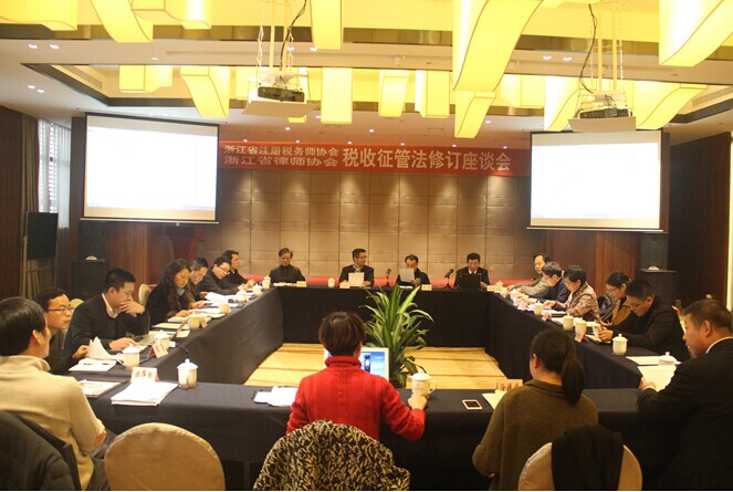 浙江省注册税务师协会、浙江省律师协会于1月26日在杭州共同召开税收征管法修订座谈会。座谈会对《中华人民共和国税收征收管理法修订草案(征求意见稿)》进行研讨并提出修改意见。浙江省注册税务师协会金星副会长、浙江省律师协会沈田丰副会长,浙江省注册税务师协会金跃良副秘书长出席了座谈会,座谈会由浙江省注册税务师协会副会长、中汇(浙江)税务师事务所所长袁小强主持,省内一些知名律师和部分税务师事务所所长共20多人参加了座谈会, 中汇(浙江)税务师事务风险管理与技术部高级经理侯展、章建良也参加了座谈。